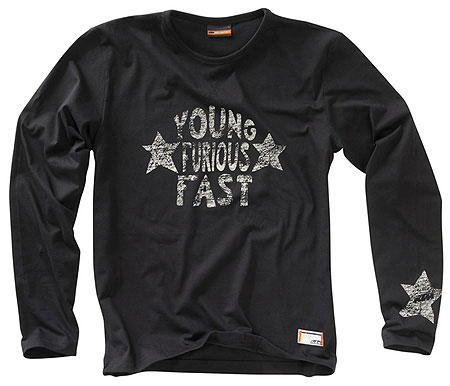 En tout cas jeune et furieux. Est-ce un critere de rapidité? A voir. Maillot a manches longues en jersey simple, avec impression de poitrine et sur les manches en look usé. Body Fit.