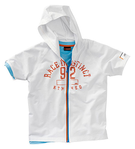 T-shirt a capuche en matiere sweat légere et agréable. Fermeture par zip en plusieurs couleurs sur le devant, impression en look usé. Body Fit. 95% coton, 5% lycra.